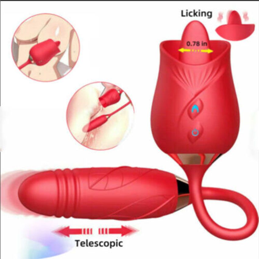 Two-in-one Automatic Retractable rose-shaped clitoris tongue licking vibration toy, 100% brand new and high-quality. The cute little rose clitoris tongue licking vibrator is shaped like a rose. The cute shape allows you to take it with you and experience the ultimate pleasure of oral sex at any time.* The safe and silky silicone sex toys are made of medical grade silicone, which is hygienic and tasteless. This smooth clitoral tongue lick can bring more comfort to your private parts.Unique and elegant rose-like design-the vibrator consists of a rose-shaped tongue lick and a vibrating rod.The overall appearance is like a rose artwork, which eliminates the embarrassment caused by sex toys and protects your private life.❤Vacuum clitoral tongue licking massager simulates realistic oral pleasure, tongue licking and vibrating clitoris or nipples in 10 different modes from mild to wild, allowing you to have a new orgasm experience ❤The body is 100% safe and easy to clean: We only use FDA-approved high-quality, silky soft silicone in all our products. It is hypoallergenic, hygienic, silky, healthy, odorless and easy to clean. ❤ Rechargeable: Equipped with a USB charging cable, it can be charged anytime and anywhere, and it can work for 2 hours on a single charge! It can also be charged with the help of a mobile power supply. ❤Clitoris tongue licking vibrator sex toys female nipples clitoral tongue licking clitoral stimulator masturbation device adult oral toys zero noise and waterproof; this means that it can be used in bathtubs, showers, swimming pools, etc., so that every woman can have fun anytime, anywhere .The combination of romantic rose tongue lick and passionate vibrator makes your delicate skin feel passionate sex. This is the ideal vibrator.As the perfect gift for yourself or your lover