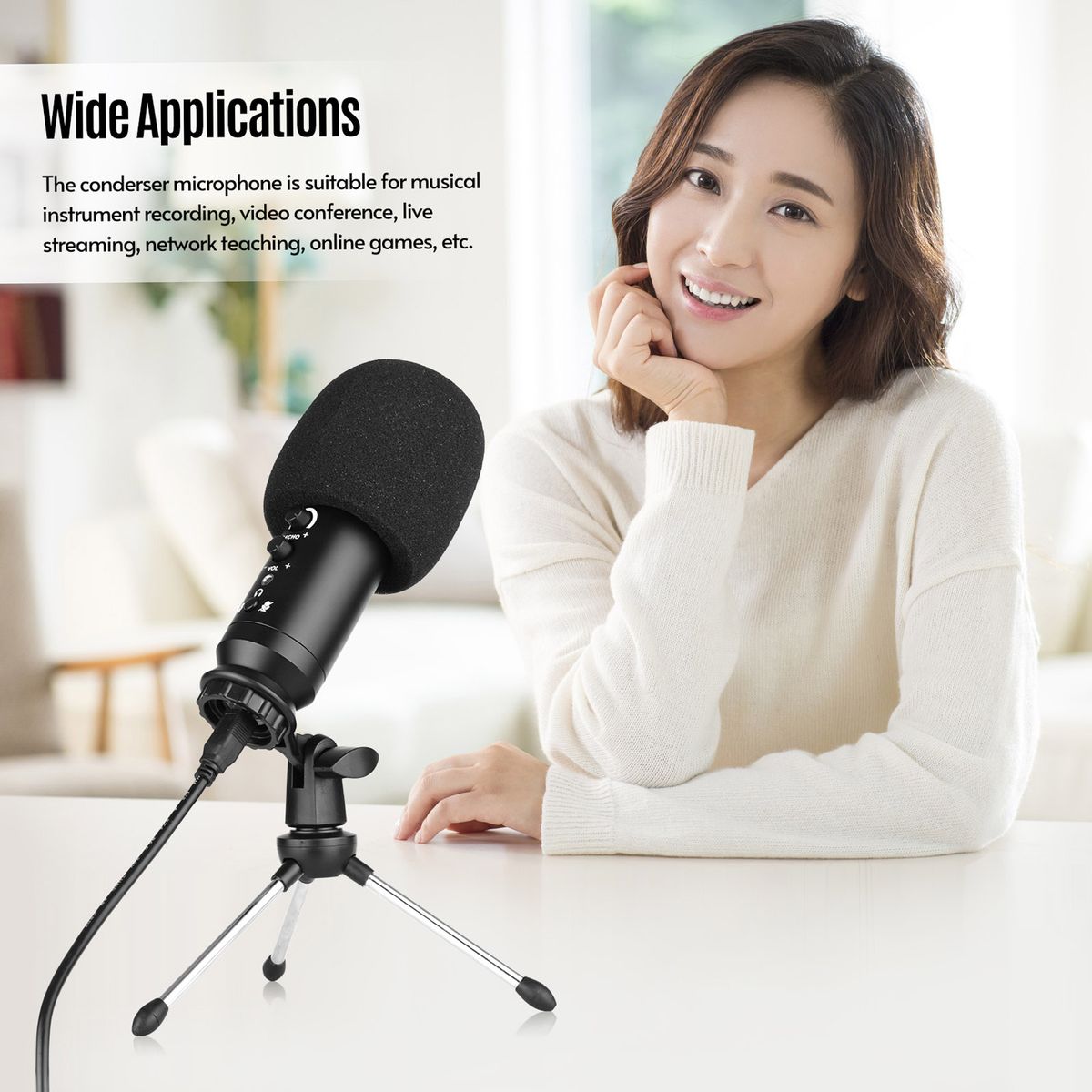 Wide Applications: No need any complicated connection, the condenser microphone is suitable for musical instrument recording, video conference, live streaming, network teaching, online games, etc.