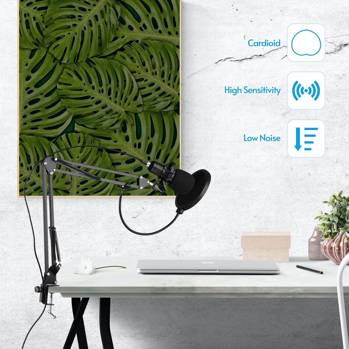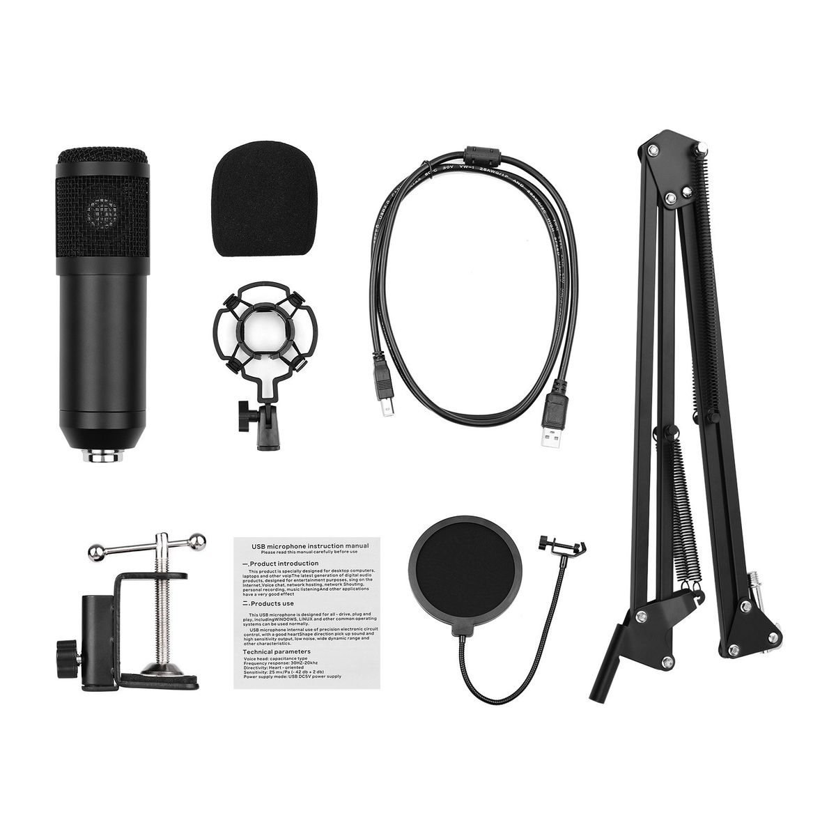 Comes with muff, pop filter and shock mount, reducing pops and tick, thus improve sound quality; also comes with table clamp, scissor stand and shock mount, easy to install and more convenient for you to use the microphone.