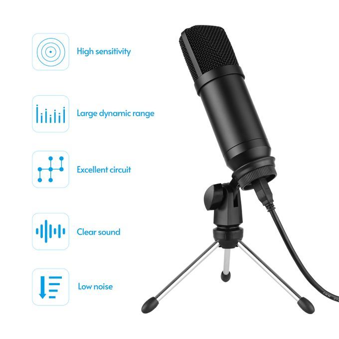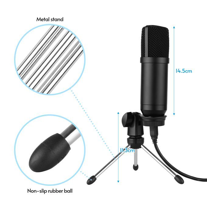 Condenser microphone with professional sound chipset and high sensitivity has high-quality sound output, excellent sound effect, and less static noise.