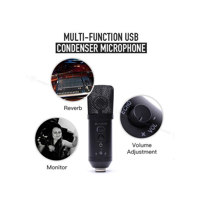 1.Multi-function USB condenser microphone.Reverb / Volume Adjustment and Monitor.There are adjustable reverb and volume buttons on the microphone. There is also a headphone jack that you can monitor in real time while you sing.2.ABS material, built-in metal mesh cover and high-density windproof cotton to reduce noise and ensure high quality sound.3.Cardioid , Cardioid pick-up pattern minimizes background noise and isolates the main sound source.High sensitivity, provide you with professional recordings.4.Good for Online games, video conferencing, internet video chat, musical instrument recording, Chatting, Skype,Discord, Yahoo Recording, YouTube Recording. Specification:Directivity: CardioidImpedance: ≤2.2KΩSensitivity range: within -3dB at 1VPower supply:USB DC5V Frequency response: 50Hz-16KHzSignal to noise ratio: >36dB