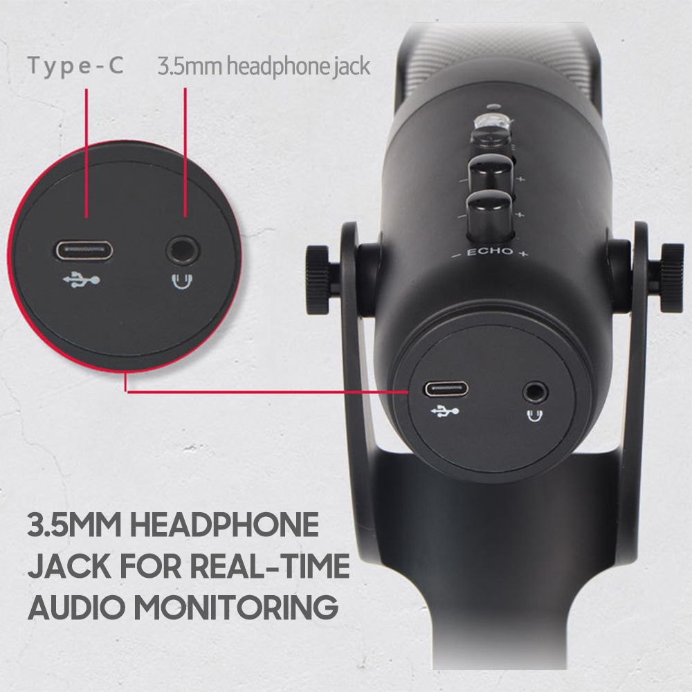 There is a tap-to-mute button on the mic top, and also provides adjustable volume/echo knob, making it convenient to use.