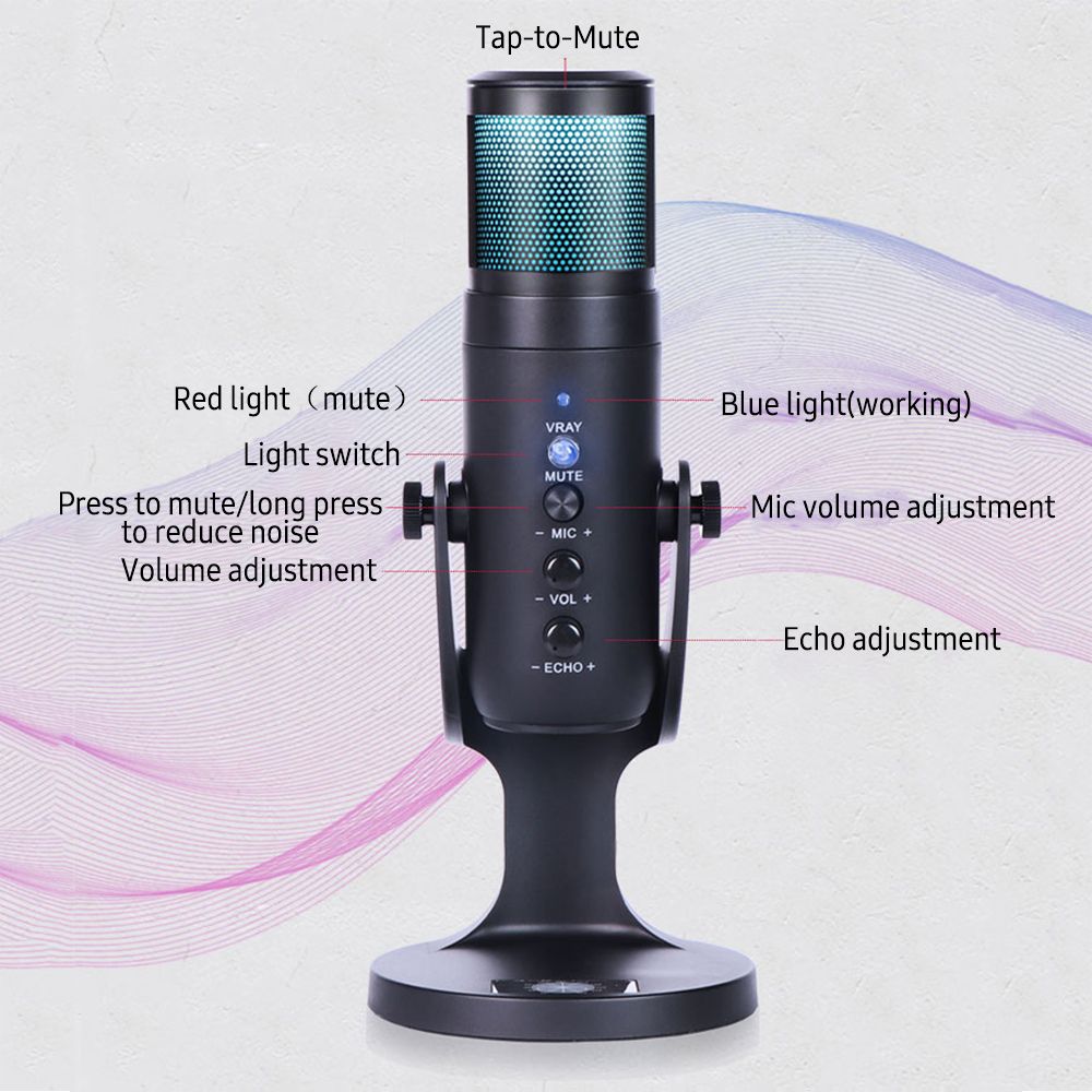 Features:Equipped with RGB colorful dynamic lights, looking cool and fun, making your live streaming experience more interesting. There are 6 lighting effects available.