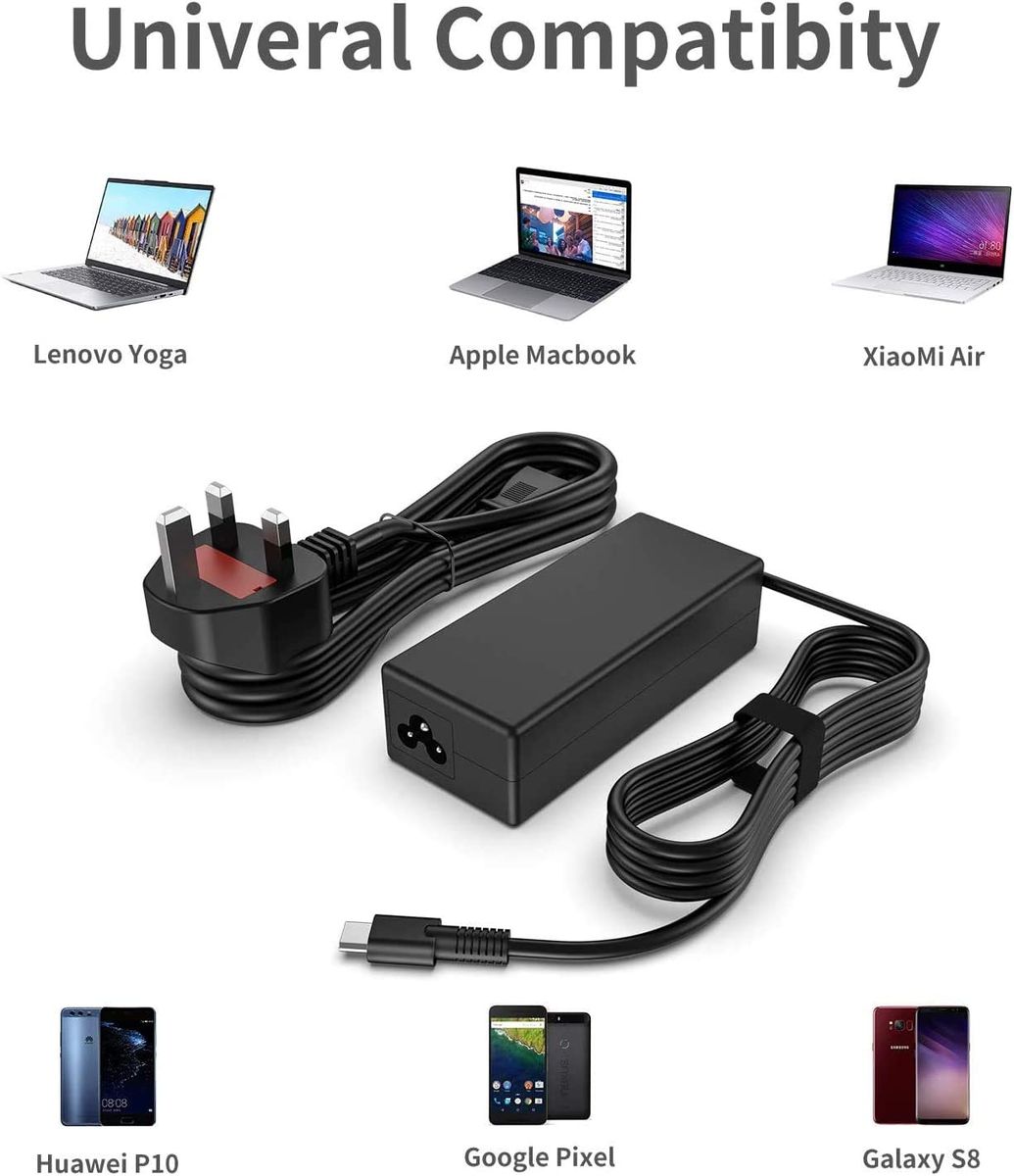 Buy USB-C/Type C Charger Power Adapter 65W For HP Spectre Pro X360 G2 X2,Envy 13 15 17 X360,EliteBook X360 1020 1030 1040 745 830 840 G2 G5 G4 G6 G7,Chromebook 11 14 14A G5 G6 With UK Extension Cable in Nigeria