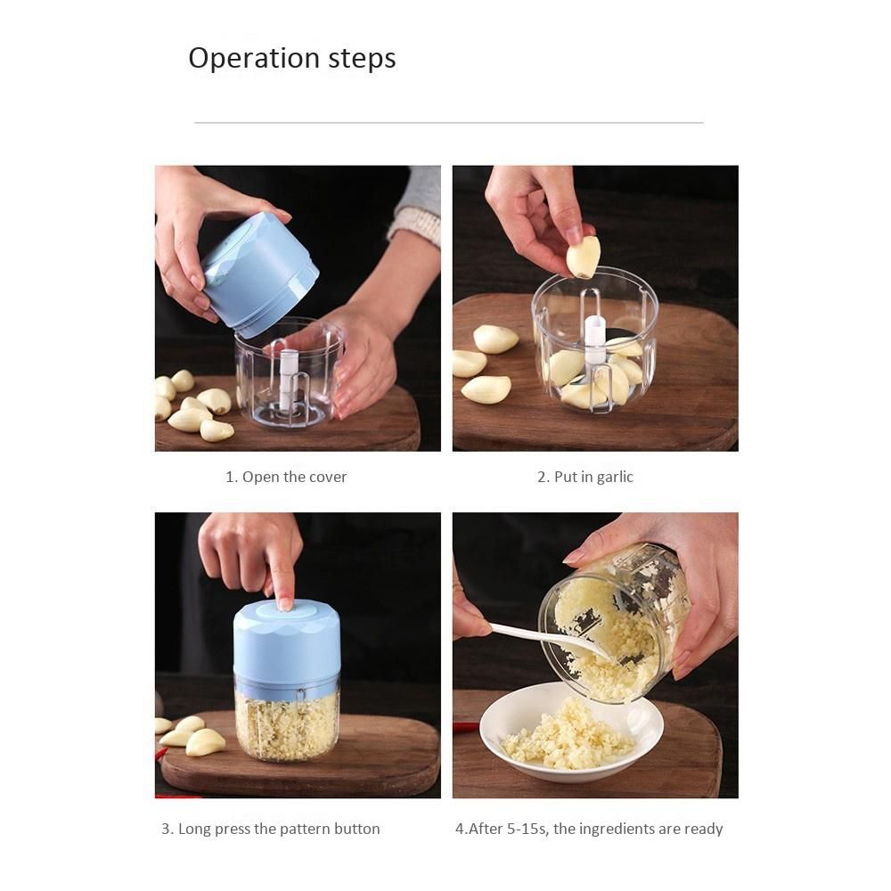 USB Electric Food Garlic Masher,Mini HandheldUSB electric food grinder, rechargeable. Press the top button to automatically mix the food.