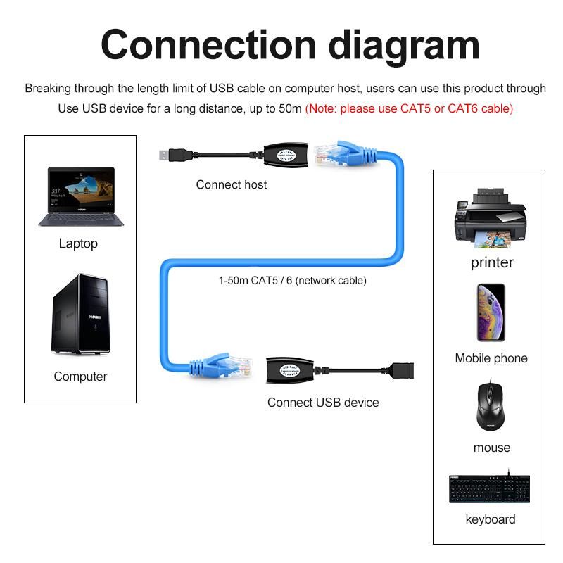 3. Extend the computer USB interface to 50 meters according to actual needs, and the low-speed equipment can reach up to 100 meters