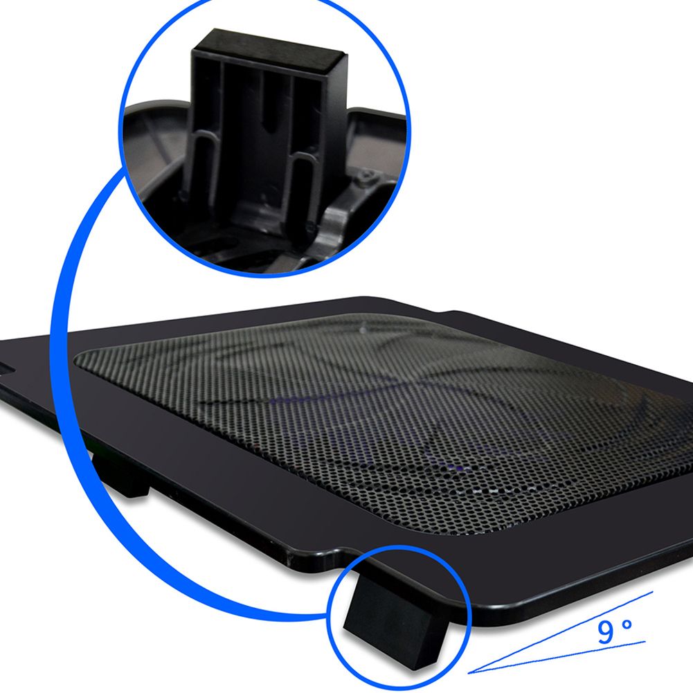 【Ergonomic Design】This laptop fan cooling pad provide your notebook with optimal viewing experience. Adjustable from degrees helps to relieve neck pain caused by prolonged computer use and incorrect posture. The notebook cooler has built-in platform ventilation to deeply cool your devices.