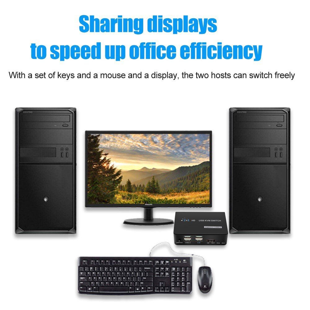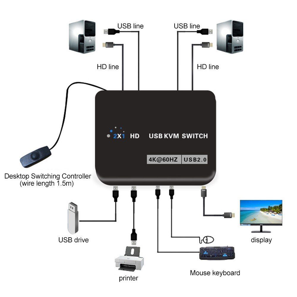 Buy USB KVM Switcher Plug And Play 2 Ports 2 In 1 Out 3840*2160 HDMI-Compatible Splitter For Sharing Keyboard Mouse Printer in Nigeria