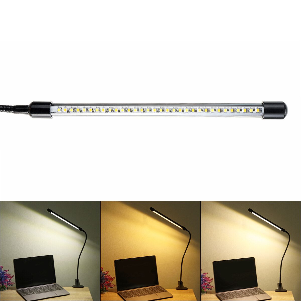 Feature:- Dimmer Clip on Light: The Flexible clamp light has 3 colors mode light.- 360 degree Rotation LED Light: The desk light can be 360 degree rotation in all directions for use anywhere.- Eye Protection Clip on Lamps: Led clamp light flicker-free and non-glares light, Perfect for a long time of reading or writing, less fatigue of the eyes.- Smart Function Led Desk Light: The LED lamp will be automatically powered off 1 minute later after keeping pressing the button more than 2 seconds.- The strong metal clamp can up to 2 inch/5cm() thick desk.Space saving, suitable for reading,office,art workshop,architect,etc.- The clip desk lamp's head is crafted with aluminum, preventing overheating for easier heat emission, extend the lifespan.
