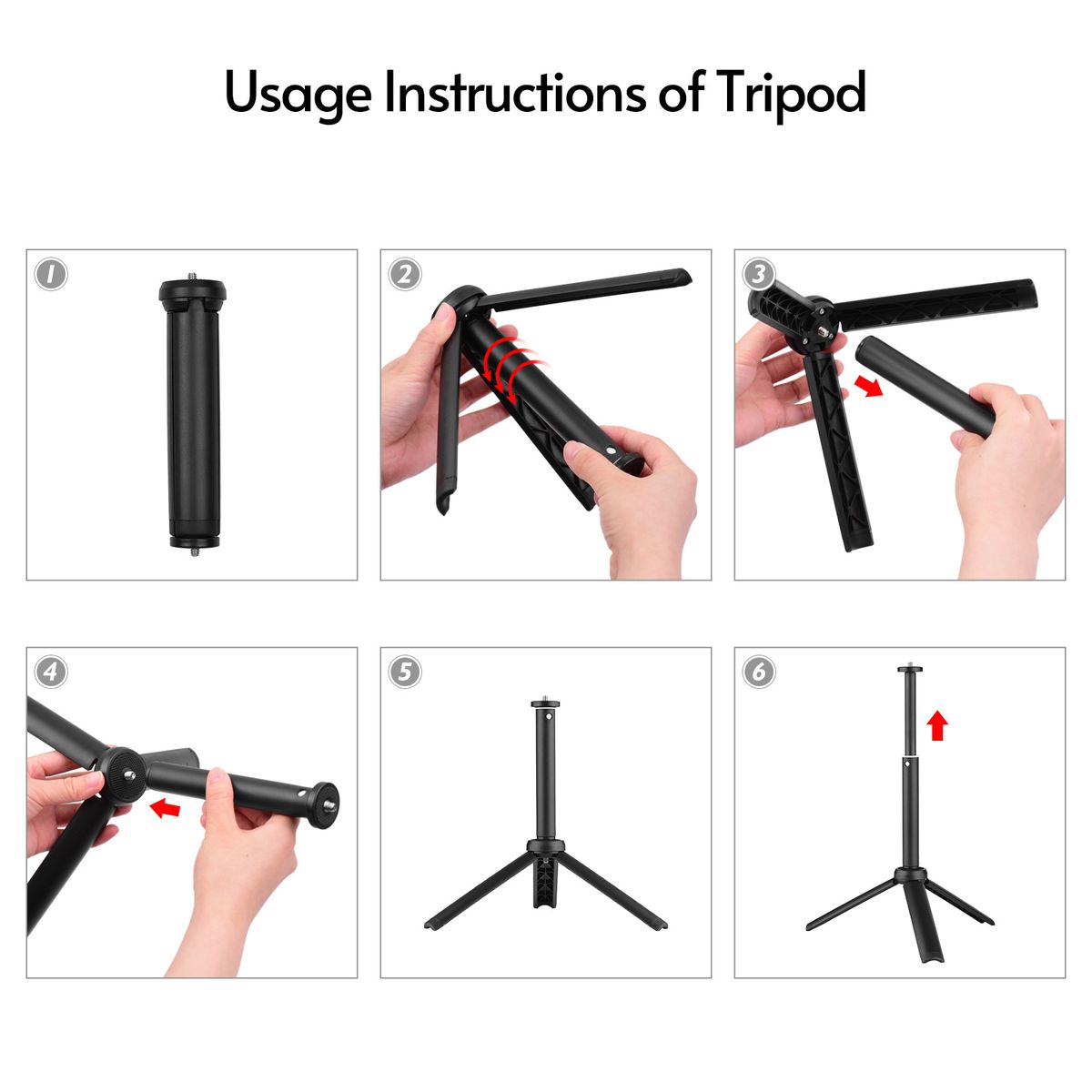 【Desktop Tripod & Flexible Mounting Adapter】Comes with a stretchable desktop tripod(25cm-35cm adjustable height), which allows you to place the LED video light on desktop stably; and the 180° rotatable mounting head enables you to adjust the lighting angle freely.