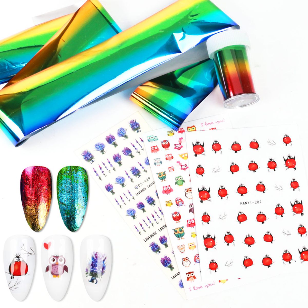 The nail stickers and starry paper are beautiful decoration for nails.