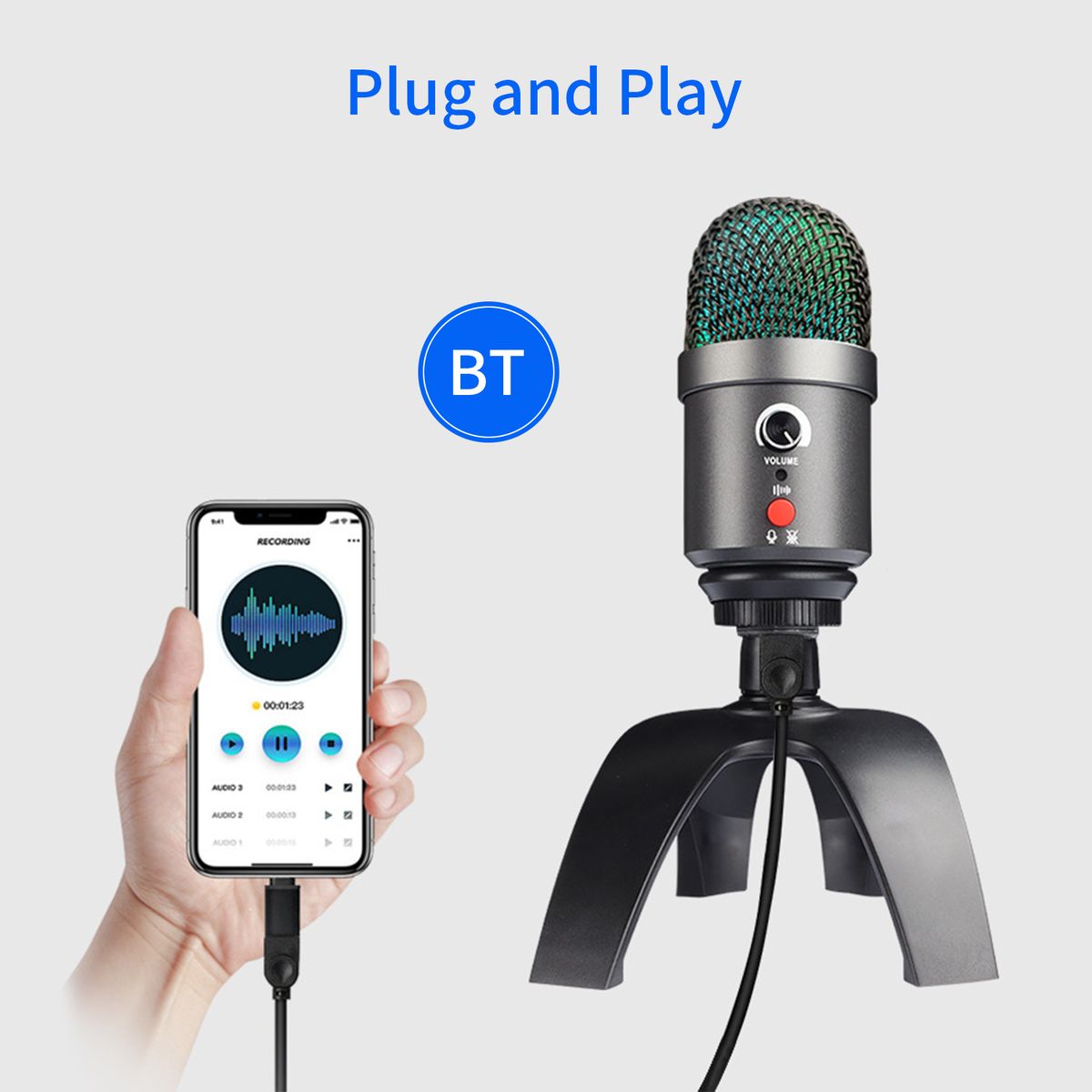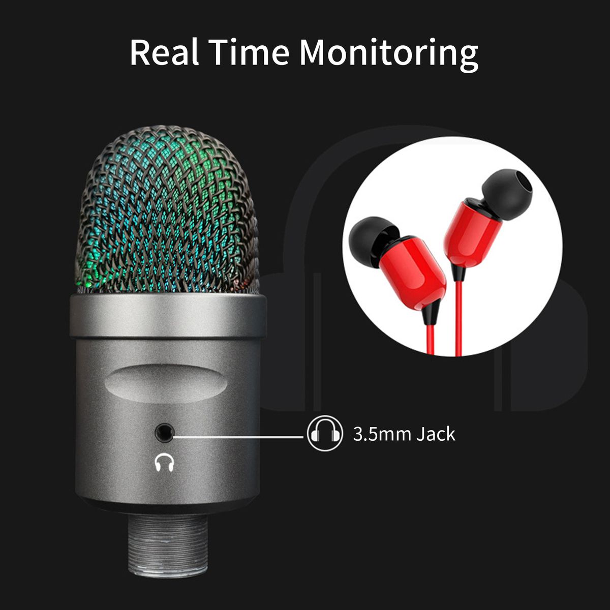 ♫ The microphone with RGB lighting, adding more fun and color, With a knob to adjust any angle to adapting position.