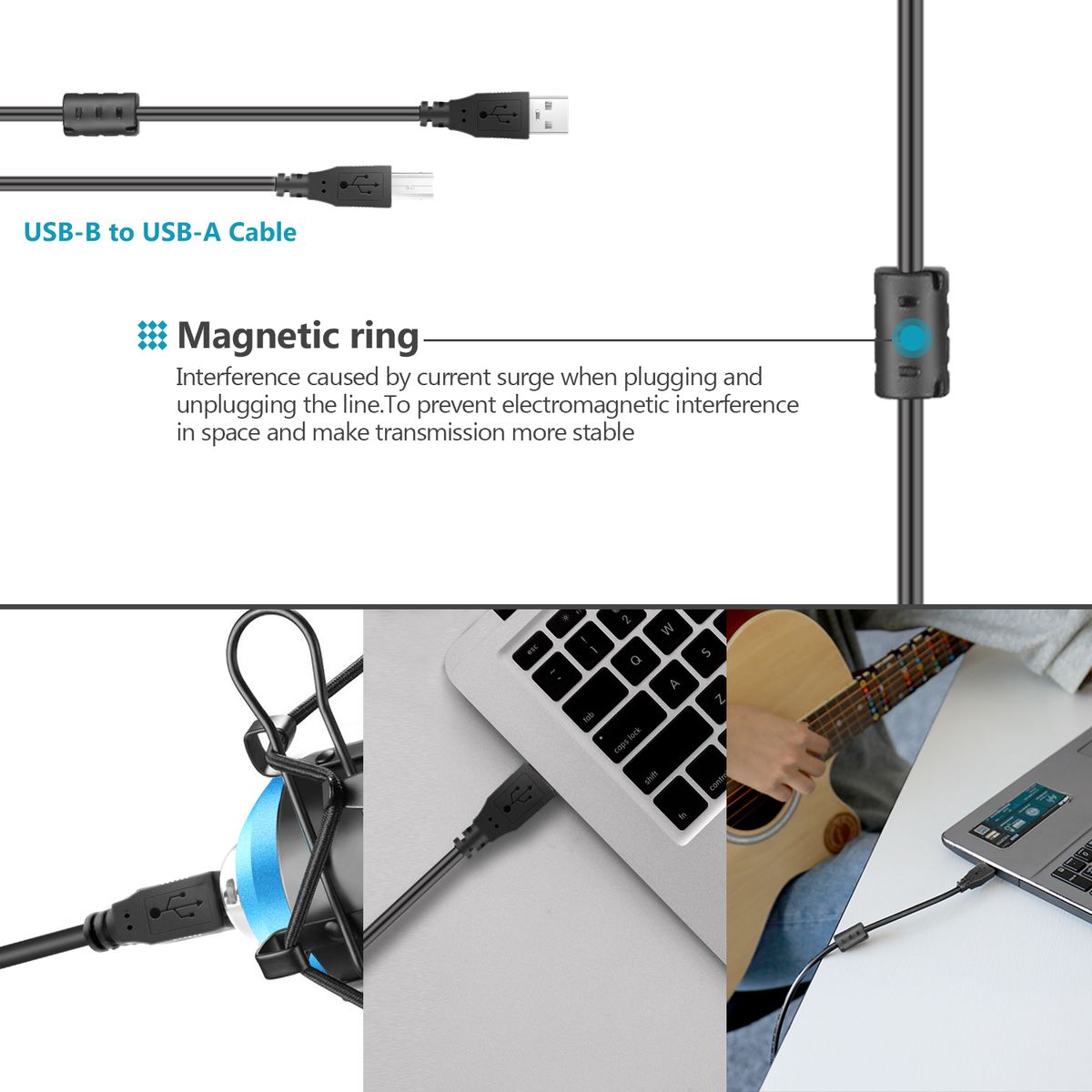 16mm ELECTRET CONDENSER TRANSDUCER & MAGNET RING: With the 16mm electret condenser transducer, the USB microphone can give you a strong bass response. This professional condenser mic picks up crystal clear audio. The magnet ring on the USB microphone cable has a strong anti-interference function, which makes you have a better feel