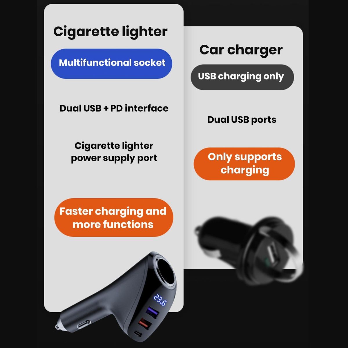 Our upgraded car charger, the perfect solution for charging your devices while on the go. with support for pd fast charging, you can now charge your devices up to 50 in just 30 minutes, ensuring that you never run out of power during your travels. .