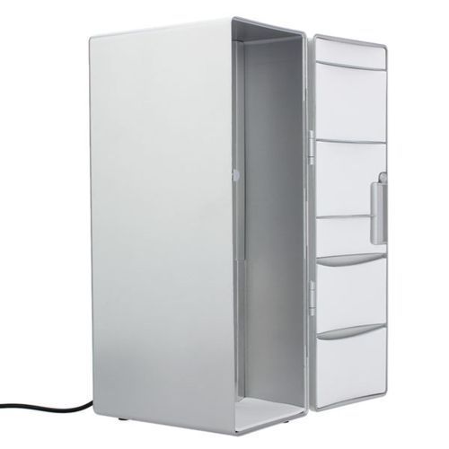 Package included: 1 X mini fridge 1 X USB line Specification: 1.Two kinds of using:cool and heat 2.Refrigeration temperature:lowest can reach to 8-9 degrees 3.Heating temperature:highest can reach to 40-65 degrees 4.Cools a beverage from 5V USB Power,800mA 5.Keep a canned beverage of your choice chilly cold and ready to drink at your desktop 6.Powered by USB cable with a switch to change the two functions-heating and cooling 7.Material: ABS 8.Internal LED light 9.USB powered 10.No batteries required 11.Plug and play 12.Compatible with all platforms 13.Fridge Size: 12.5 cm*8.3 cm*24.8 cm (4.92 in*3.26 in*9.76 in) 14.Can be placed in two can of drinks