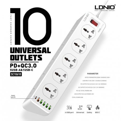 Buy Usb Ports Desktop Extension Home Charger - Sc10610 2500w 10 Sockets + Type-c Pd + Qc3.0 6 in Nigeria