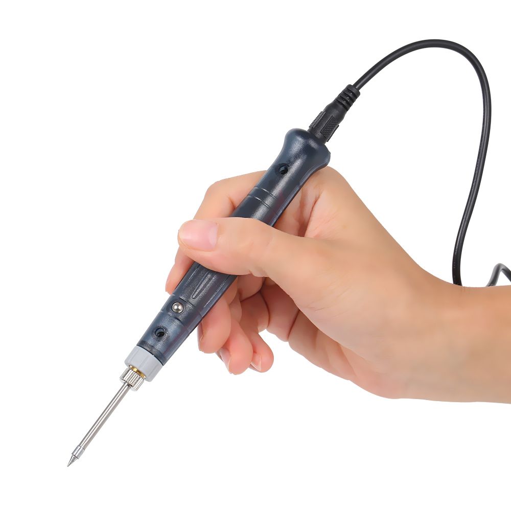 Slightly pressing the metal point on the body of the soldering pen, then the LED light will be lightened up and job can be started.