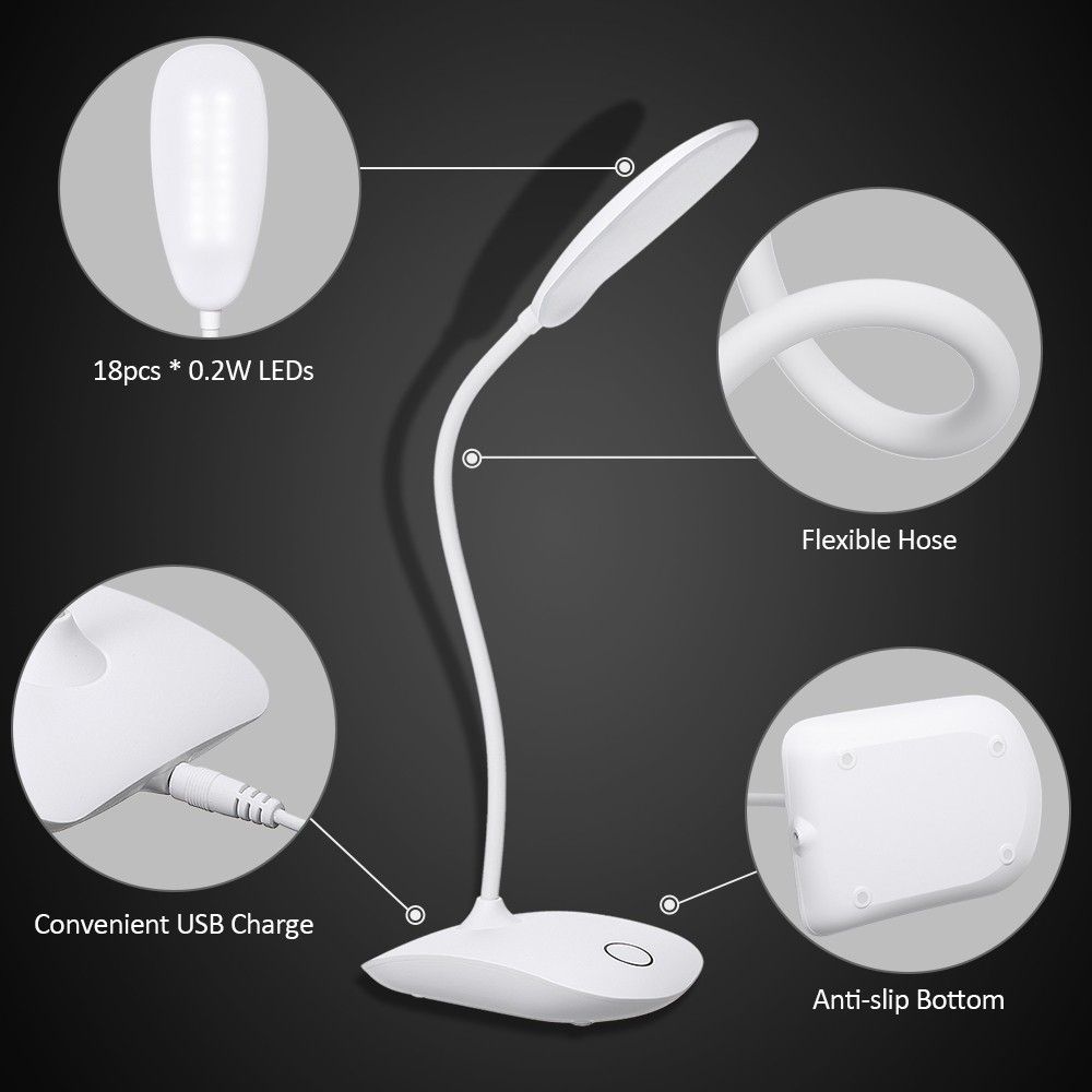 Multi-purpose ultralight LEDs desk lamp with 360 deg; rotatable hose make lighting more flexible. Uniform and soft LEDs lighting source can protect eyes, is portable for both indoor and outdoor use.