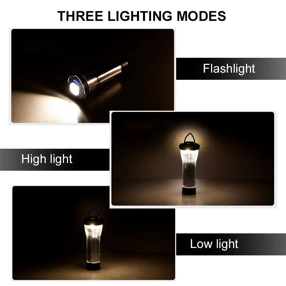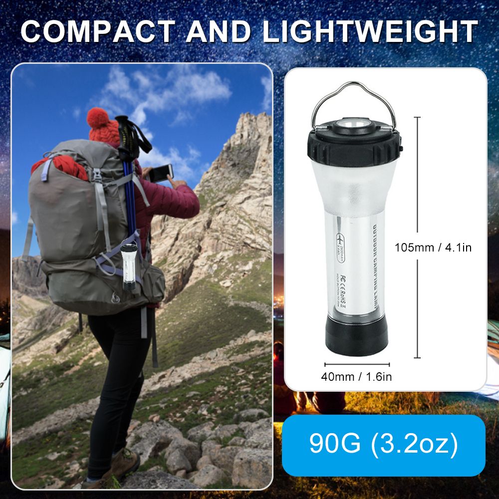 This camping lantern features 3 lighting modes with a simple press of the button, very easy to use. With built-in rechargeab-le battery, you can charge the light from any device with a USB output port, such as , laptop, computer, and more. You can also stay informed of the battery life by the blue indicator lights. For added convenience, the light is designed with strong magnet to absorb on metal surface, and metal hook to hang anywhere you want. You can also install the light on the tripod and place on the desktop. Measuring 4.1" long at 3.2oz, the lantern is lightweight and compact for easy storage and carrying, great choice for camping, exploration, maintenance, outdoor adventures and preparedness.