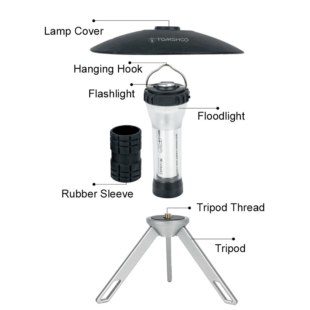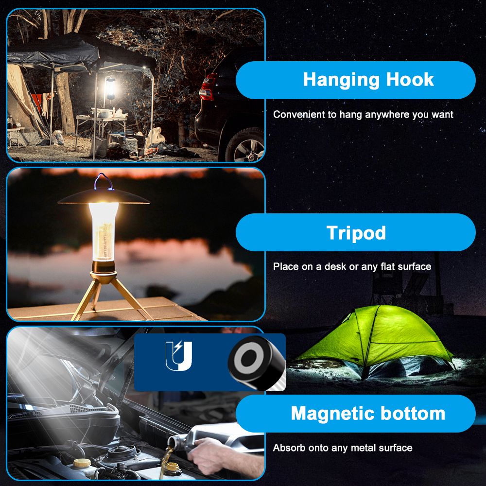TOMSHOO USB rechargeab-le Camping Tent Lantern Magnetic Work Light Flashlight with Tripod for Outdoor Camping Emergency