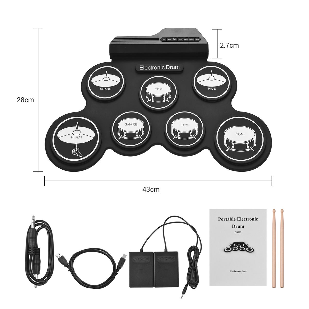Features:Compact size electronic drum set, specially designed for drum set learning & practicing of kids or beginners, very convenient to carry and store.