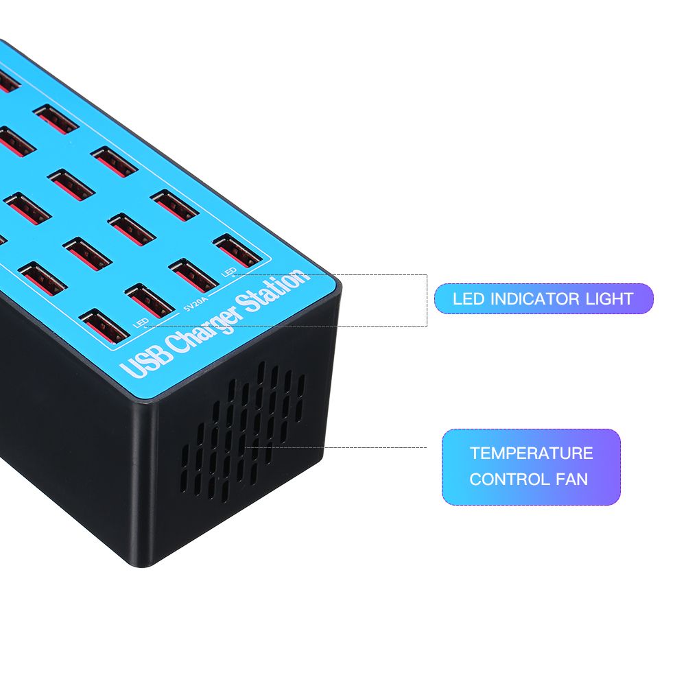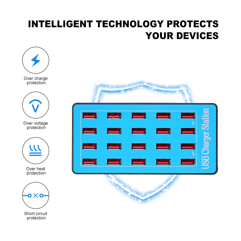 20 Ports to Charge More DevicesFeaturing 20 ports, the smart charger provides you enough ports to charge your devices.When you are holding a party, you can take it out for everybody to charge their devices.