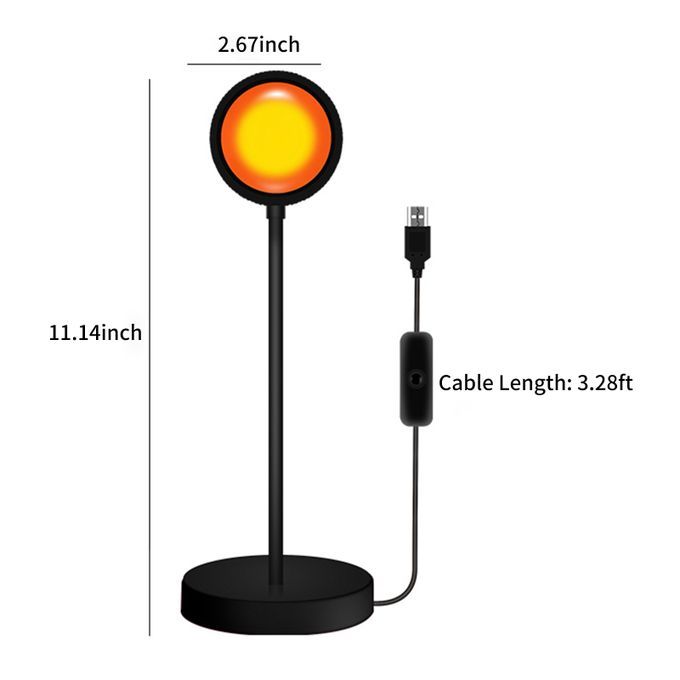 The sunset projection floor lamp 5W USB supply, cable with switch, 1m long USB cable. The sunset projector lamp allows you to have a romantic bedroom, a warm living room for you and your family, giving you unparalleled visual enjoyment and spiritual relaxation.