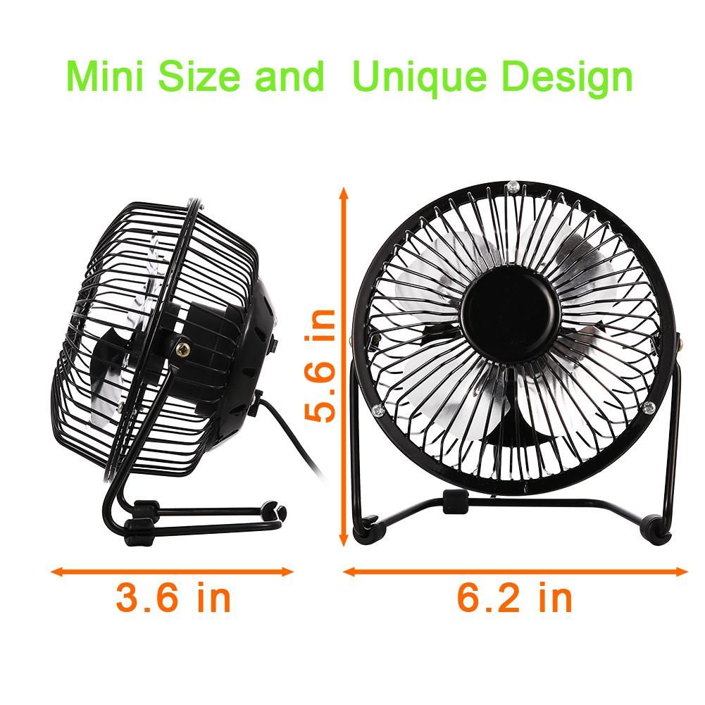Features:The use of high efficiency conversion , under the conditions of low power consumption greatly enhance the fan speed.It is simply to use, there is an on/off switch on the back, connect a usb port, then you can use it immediately.For personal cooling and use in the office, home, dorm, study, library, games room etc.The charging cable is the same as Android phone USB cable. You can use or charge the fan with your smartphone charger or plug into your computer USB interface.Get a strong, steady stream of cool air directed where you want it with this Desktop USB Fan.Specifications:Item Name: Mini USB Table Desk Personal FanMaterial: MetalGross Weight: 13.4 ozItem Dimension: 6.2*3.6*5.6 inchesItem Color: BlackOutput power: 2.5WCurrent: 0.5ACharger: 5VPackage List:1* Mini USB Table Desk Personal Fan