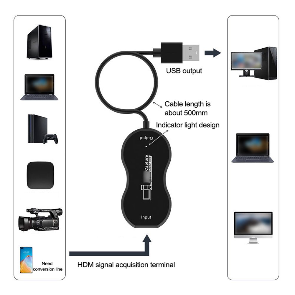 This USB2.0 capture card can capture both Multimedia Interface video and Multimedia Interface audio at the same time, and can transmit the audio signal to a computer or smart phone for preview and storage. It is suitable for acquisition, teaching recording, medical imaging, etc.