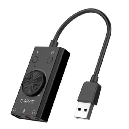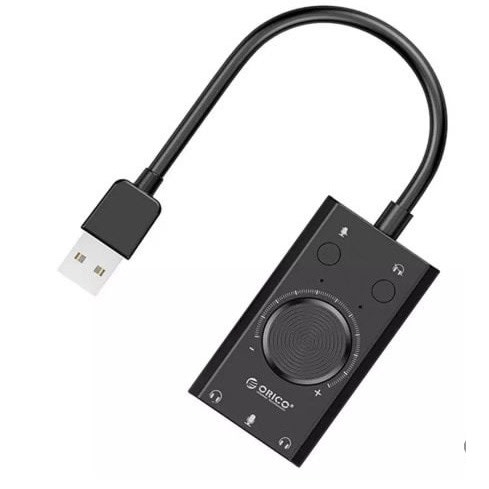 Brand ORICO SC2 External USB Sound Card Volume Adjustable 3-Port Mic Headphone Audio Card Adapter for PCFeature:With two mute switches for mic and headphone, and a volume adjustment knob.
