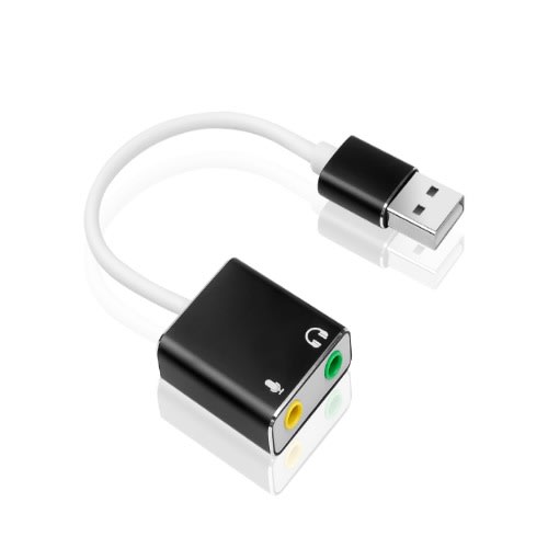 This USB Audio Sound Card Adapter instantly creates a microphone-in and audio-out jack from the USB port on a laptop or PC.