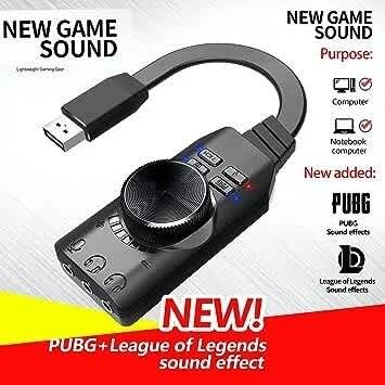 Features Overview: Features: 5Hv2 USB7.1 Channel External Sound Card Game The USB Virtunal7.1 Channel Sound Adapter is a highly flexible audio interface which can be either with Desktop or Notebook systems. Bundled with Xear 3D Sound simulation software, it turns your stereo speaker or earphones into 7.1 Channel environments. No drivers required, just plug and play for instant audio playback, also compatible with all major operation systems. System Requirement: Desktop or notebook PC with a USB port, Multi Speaker Surround 3D Adopts CM108 USB sound effect control chip Plug and play, no driver needed USB 2.0 48K/ 44.1 KHz Sound sampling 16 bit ADC microphone input Supports DS3D, EAX2.0, A3D1.0 3D, Xear3D that requires no diver System Stereo active speaker or stereo earphone Mono microphone (Optional)