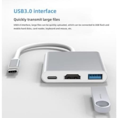 Buy Usb Type C Hub Hdmi 4k Adapter Converter With Usb 3.0 And Charging Port - 3in1 - Silver in Nigeria