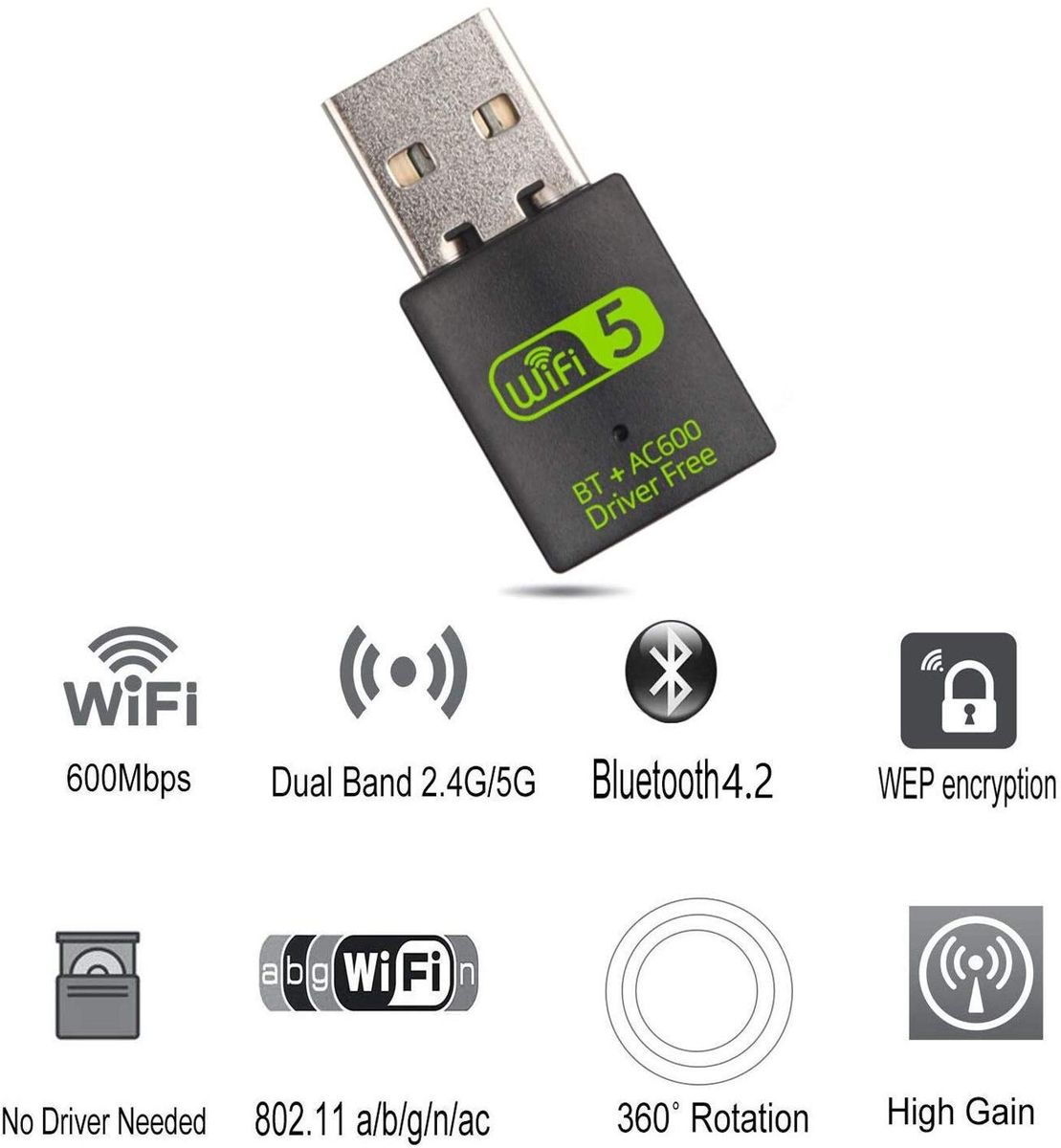 1X USB Wifi Dongle USB 2.0 wifi Adapter with BT wireless WIFI Receiver 600Mbps 2.4G 5G Free Driver Wifi Network Card For Computer
