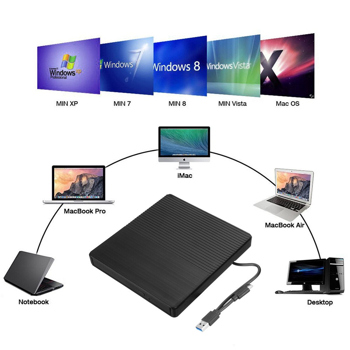 3.0 USB 3.0 and Type- external DVD drive】 Working with USB 3.0 high speed interface, brings you faster data transfer speed (up to a maximum of 5 Gbps) and stable performance with strong fault tolerance. Backwards compatible with USB2.0 and USB1.0.