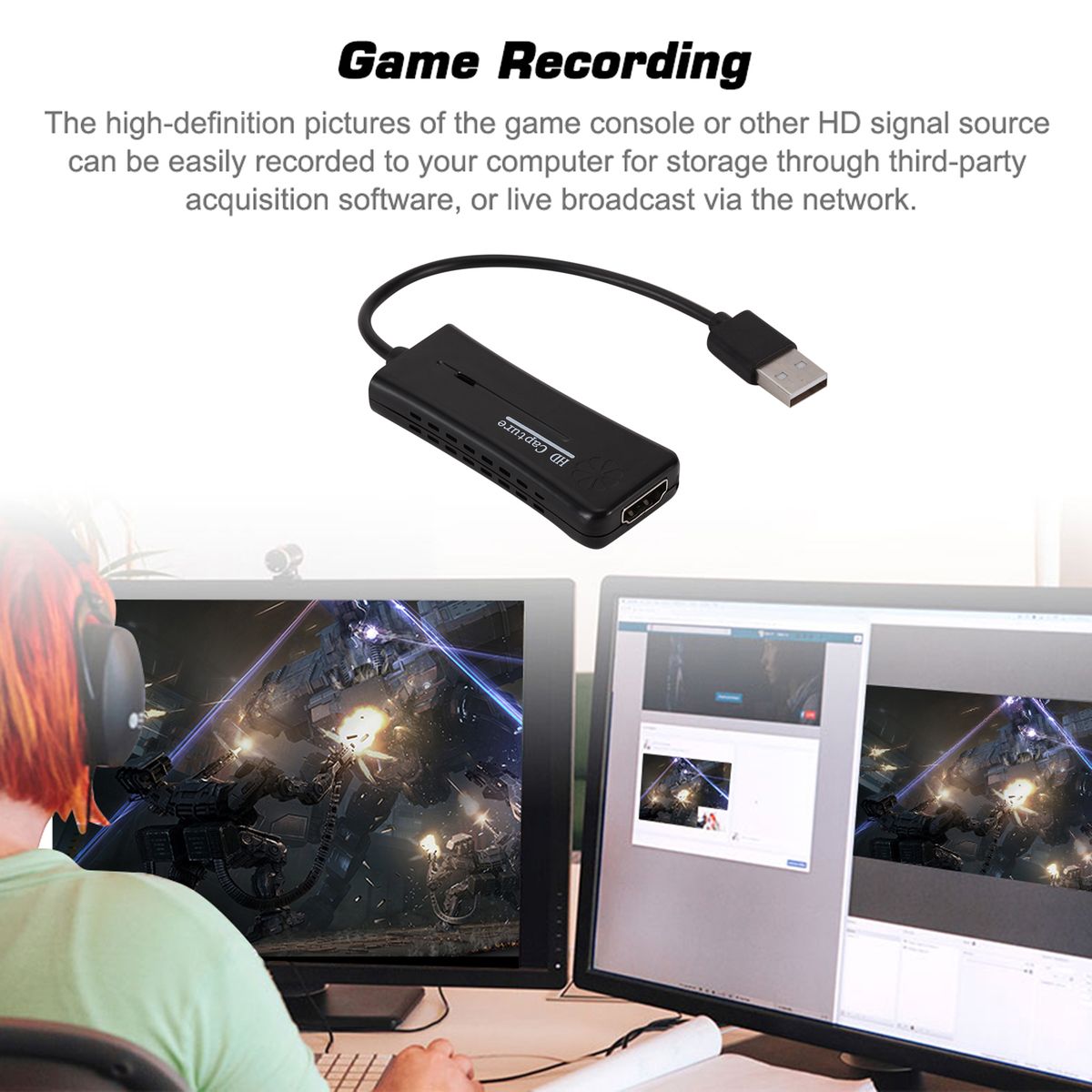 Suitable for recording teaching material, medical imaging, game live broadcast, etc. Small size, easy to carry.
