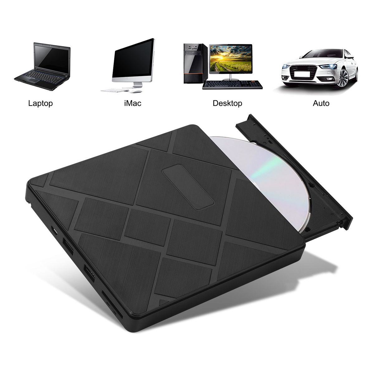 Supported Formats: The external CD DVD burner supports DVD-ROM, DVD-R, DVD + R, DVD-RW, DVD + RW, CD-RW, CD-ROM, CD-R, CD + R (W) , VCD, SVCD. Make your Windows Media Player supports the media formats you see. ( BLUE-RAY, 3D, 4K, 2K from DVD cannot be read!)