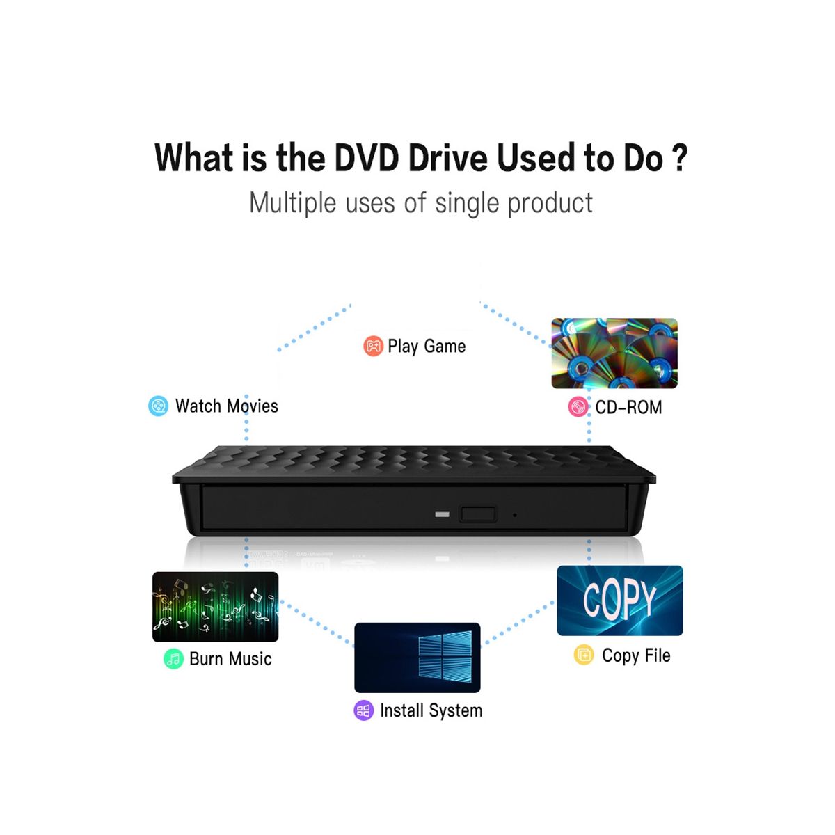Detailed Information About The Product:1. High performance: USB 3.0 DVD burner Advanced movement is fast and stable Touch control design is simple and convenient Plug and play USB port power supply Easy to use
