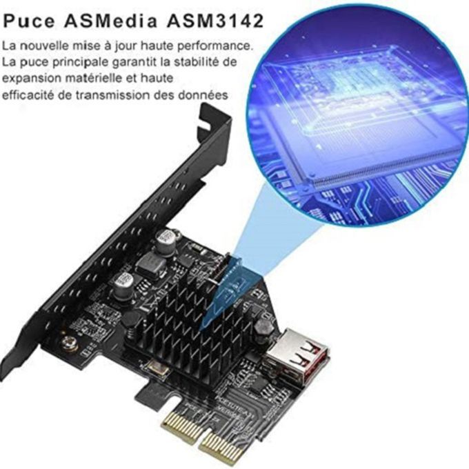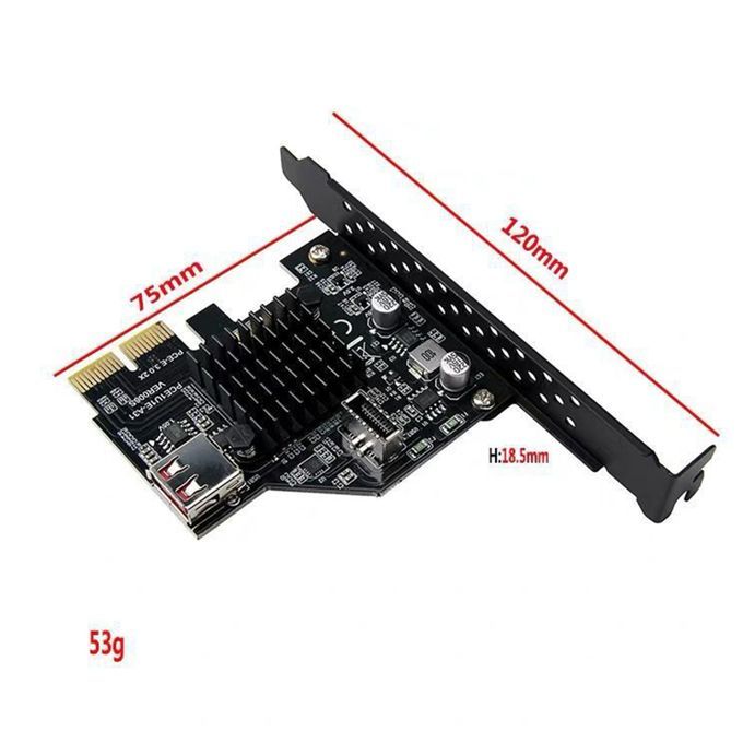 This expansion card supports for data transfer up to 10Gbps, which is a necessity for external drives, and is perfect for file backups, video editing, and data . The size is only 120x75x18.5mm, easy to install and use.