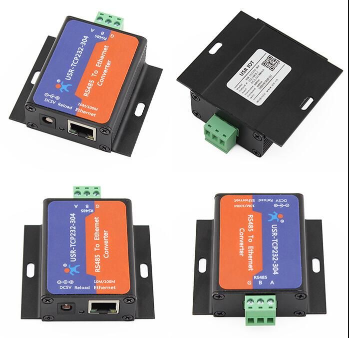 This is a serial RS485 to Ethernet server, used for data transparent transmission. USR-TCP232-304 is a low-cost serial device server,whose function is to realize bidirectional transparent transmission between RS485 and Ethernet. USR-TCP232-304 is internally integrated with TCP/IP protocol. User can apply it to device networking communication.