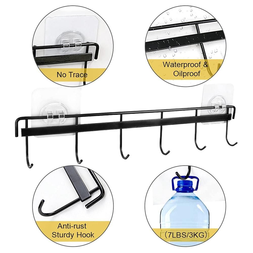 [Stable and Durable]- Solid metal and strong adhesive hooks construction, ensuring quality and longevity. Utensil hooks shelf are rustproof and create more hanging space, 2 viscosity seamless hanger provide double security on the wall, strongly hold up to 7lbs