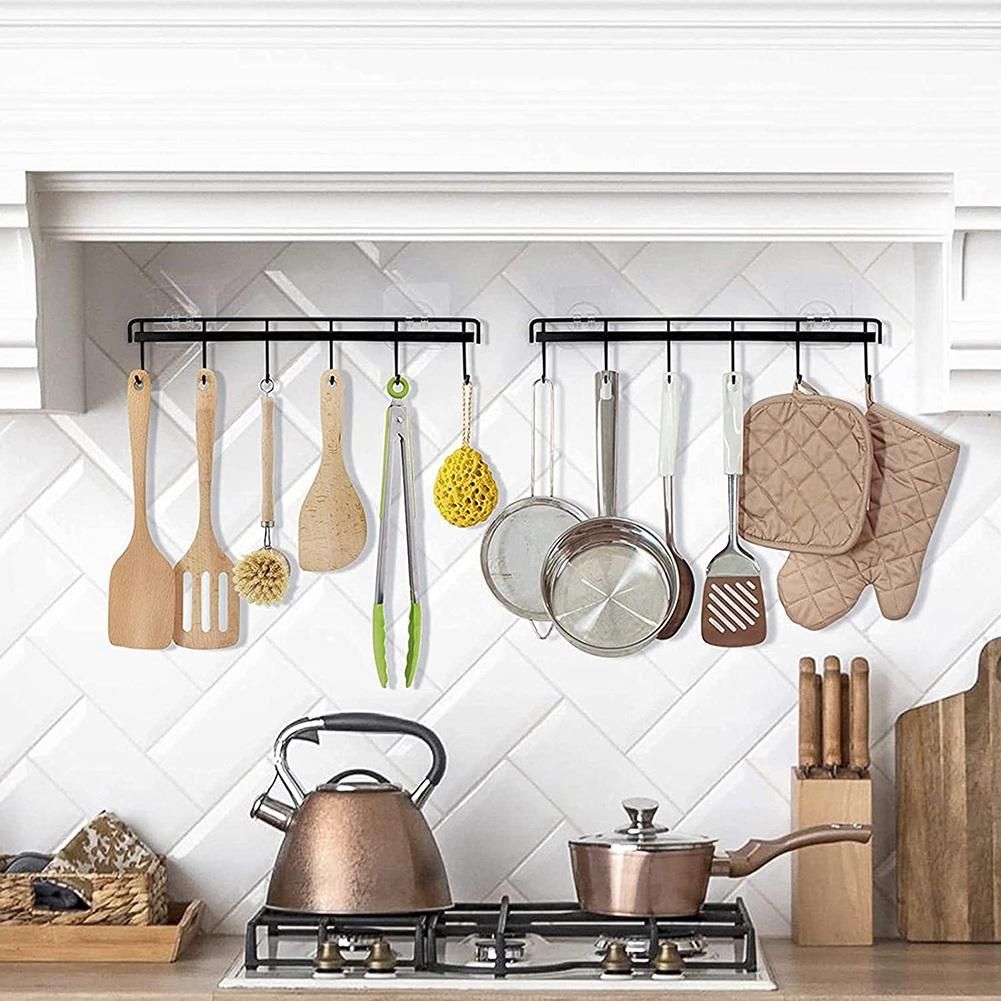 [Wide Application]- The utensil rack are muti-purpose, can be used in kitchen for hanging kitchen utensil like spoons, spatula, cooking utensils, kitchen gadgets, in your bathroom to hang towels, robe, brush, in your door back for keys, caps, umbrellas. Widely used on a variety of smooth hard surfaces, like Wood, Glass, Tile, Ceramic, Metal, Plastic Surface, etc