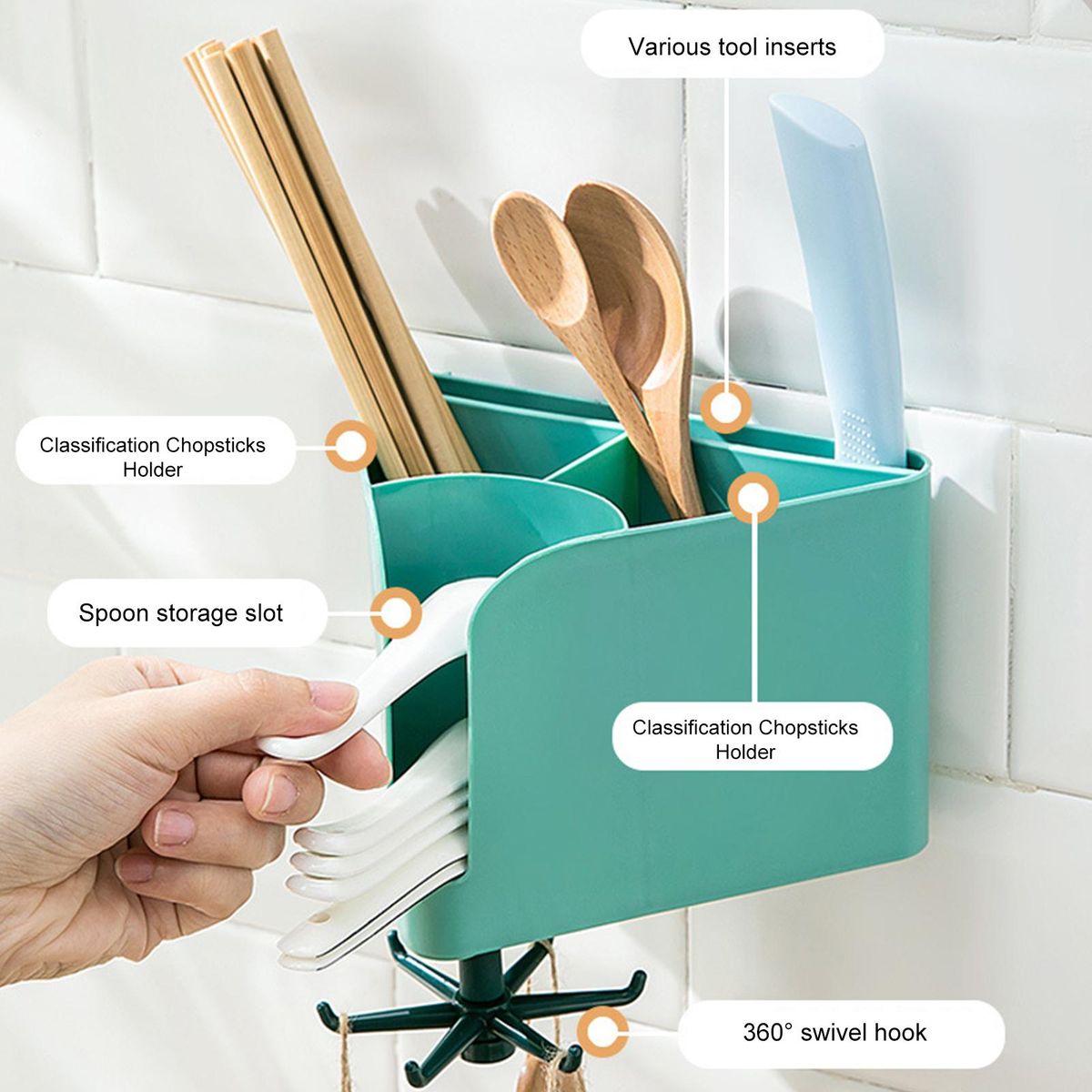 It is this utensil holder features that is equipped with a rotating hook at the bottom, so that you can easily reach any kitchen utensils on the hook by rotating the hook.