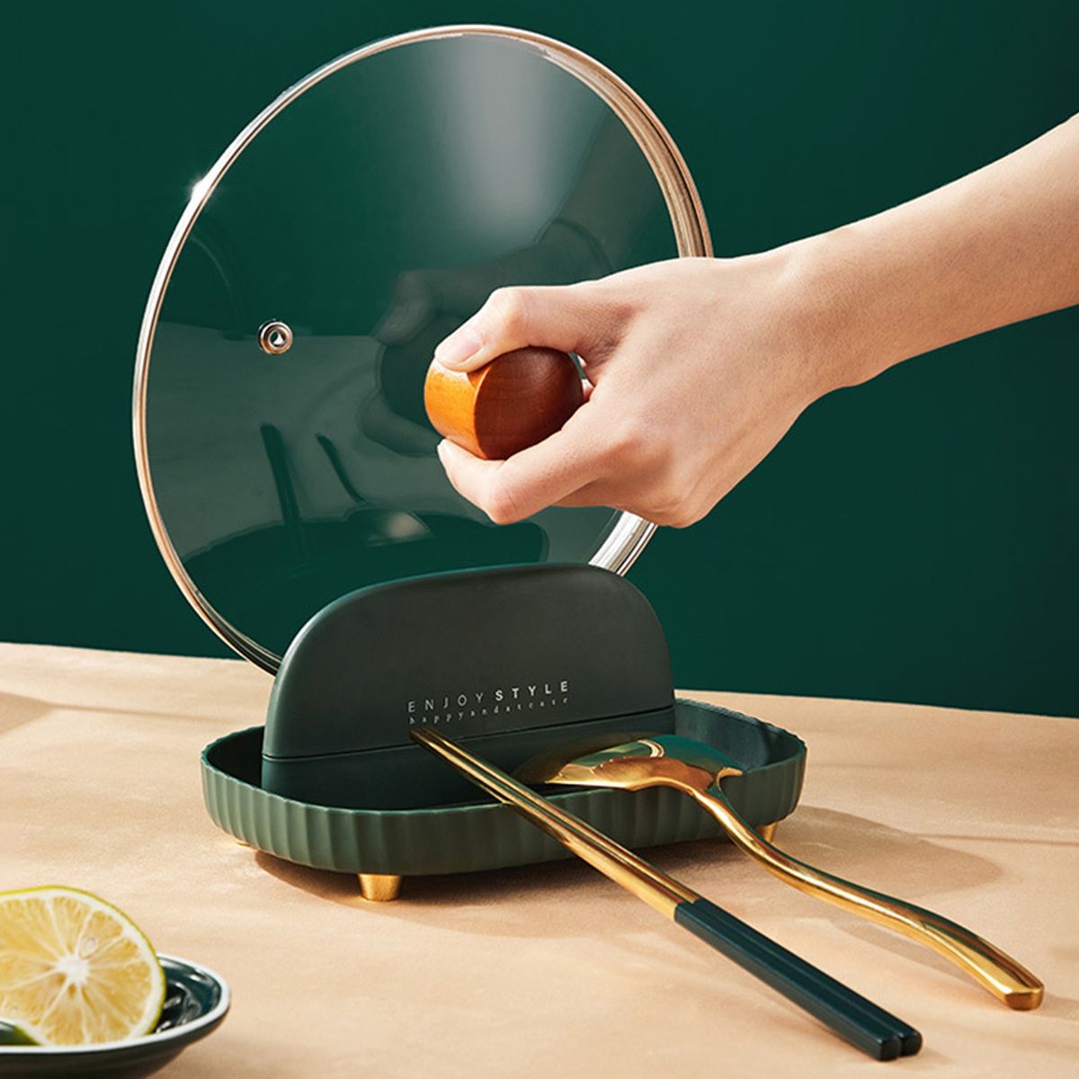 Anti slip foot pad design makes it can be placed stably without tipping. Multi-slot design holds pot lid, multiple spoons and shovel.