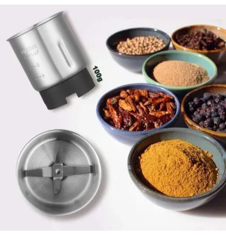 SAFETY & DURABLE MATERIAL: The machine body is made of stainless steel, the blade and the bowl are both made of 304 food grade stainless steel with the appropriate certification. In 1 minute you get fine powder.