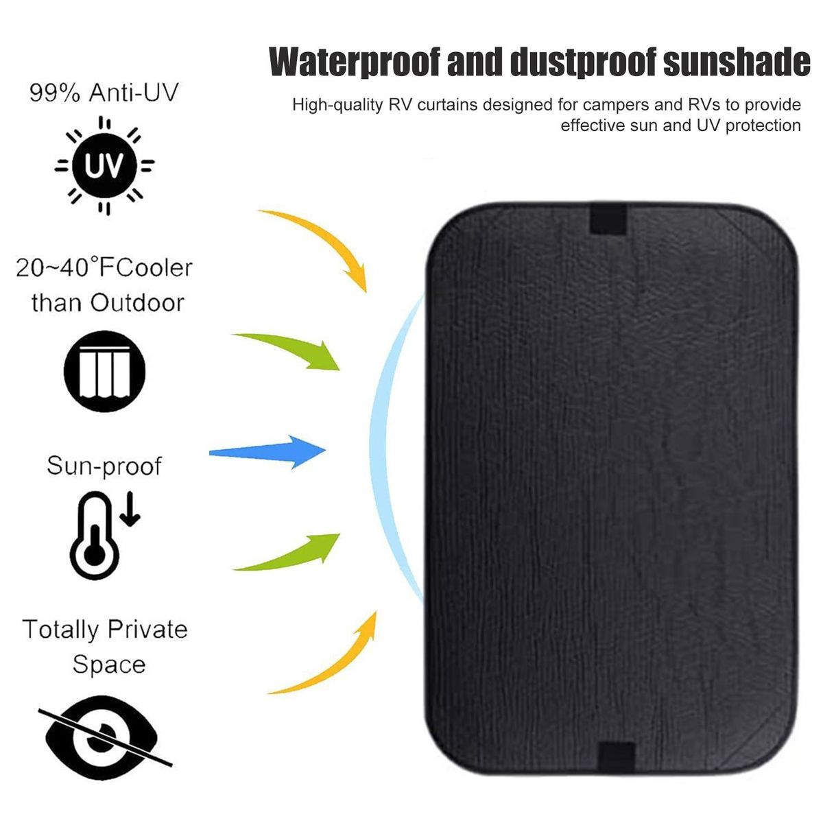 Crafted with a three-layer material structure, this shade cover offers optimal protection. the outer reflective silver layer effectively blocks sunlight and harmful uv rays, keeping your interior cool and protected. the middle insulation layer acts as a barrier against heat, ensuring a comfortable environment inside your trailer. and the inner black layer guarantees privacy and darkness, creating a peaceful atmosphere for relaxation.