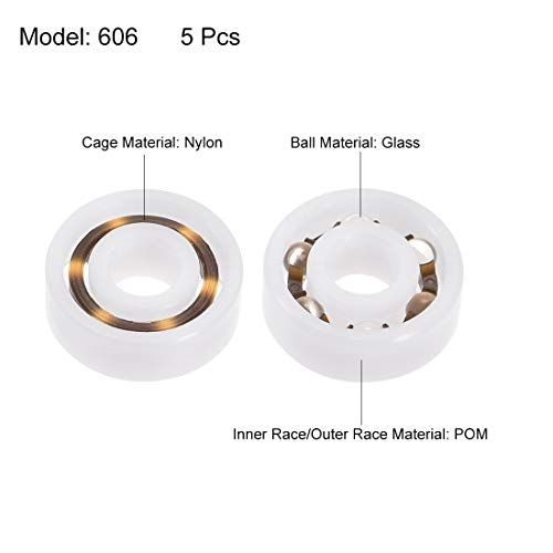 Details: Desription:-Single row, open-type, light weight plasti bearings.-This ball bearing has raes made of Polyoxymethylenefor high rigidity and hardness. The bearing balls are made of gl and the age is reinfored nylon (GRPA66-25).-Deep Groove Ball Bearings are one of the most widely used rolling bearings. They are used to aommodate radial and axial loads in both diretions.-With small frition and high-limit speed, Ball Bearings are ost-effetive and require little maintenane.-Polyoxymethylene Bearings are better in strength and wear resistane, suit for operating from - to .-Suitable for all kinds of industrial equipment, miro motor, small rotary motor, offie equipment and so on.-With good self-lubriating performane and low frition, plasti bearings are speially for high preision and high speed operation.Speifiation:Model: 6Shielded Type: Open-TypeInner Rae/Outer Rae Material: PolyoxymethyleneBall Material: GlCage Material: Nylon (GRPA66-25)Inner Diameter (d): 6mmOuter Diameter (D): 17mmThikness (B): 6mmAuray Cl: P0 (ABEC1)Noise Level: Z1Number of Pak: 5Ps