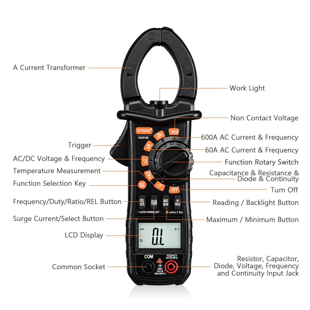 Buy UYIGAO UA2018B Clamp Meter Portable Handheld Digital Clamp Multimeter LCD Display Auto Range AC/DC Voltage AC Current Universal Tester with Backlight Capacitance Resistance Frequency Temperature Measure Diode Hz Tester in Nigeria