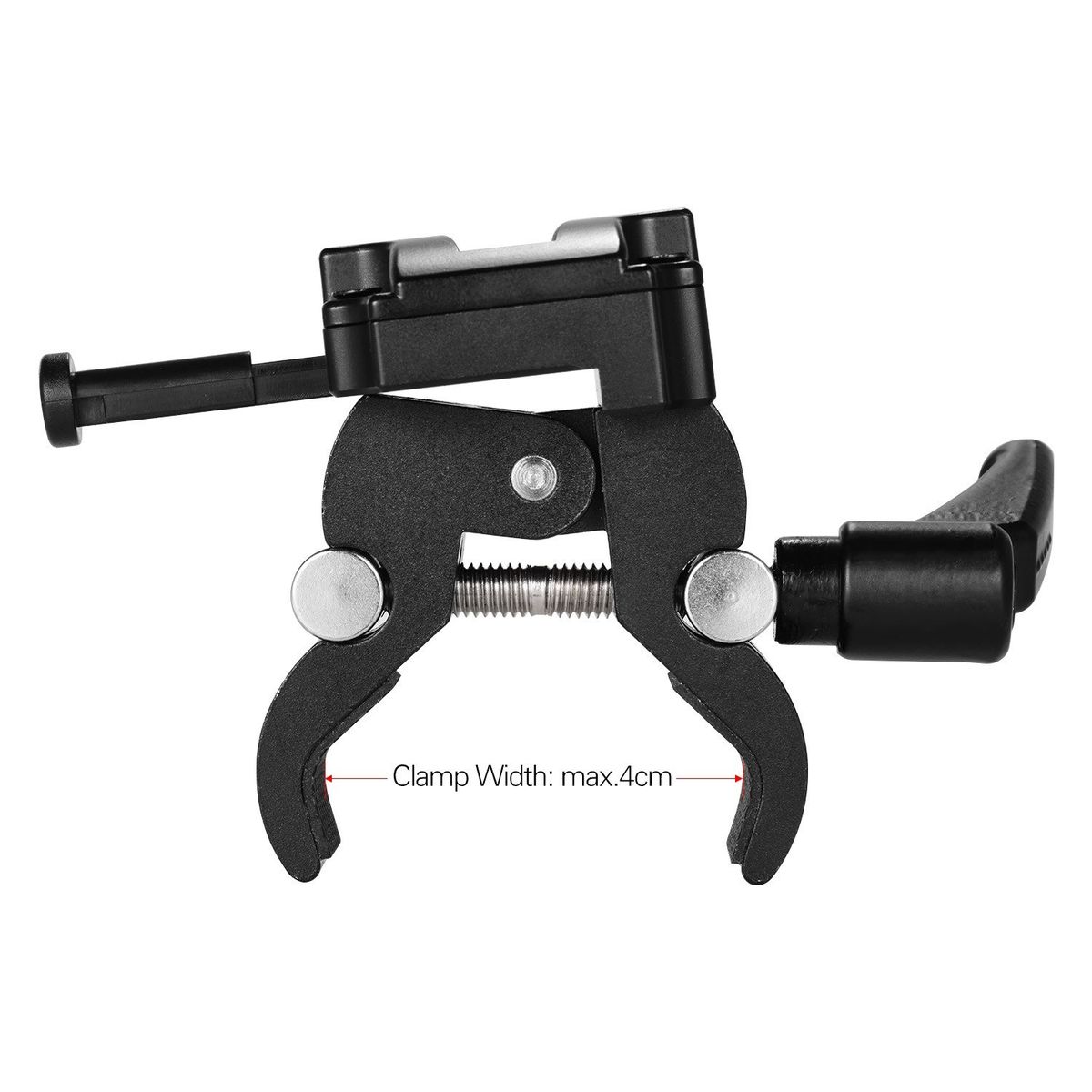 The clamp can be opened up to 4cm, suitable for most of pipe, tripod leg and light stand.