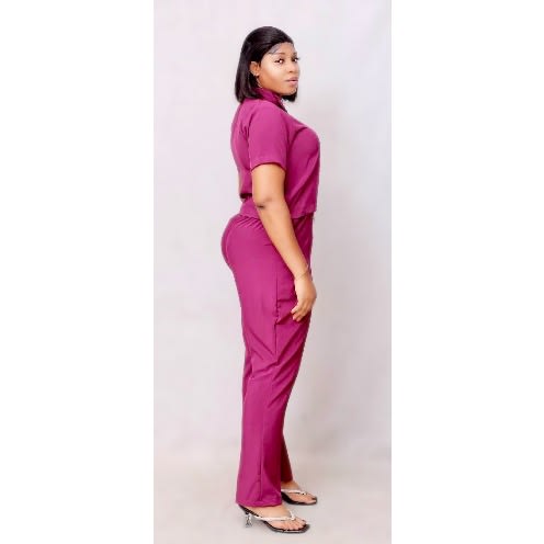 Buy V-neck Bishop Collar Set -Magenta in Nigeria